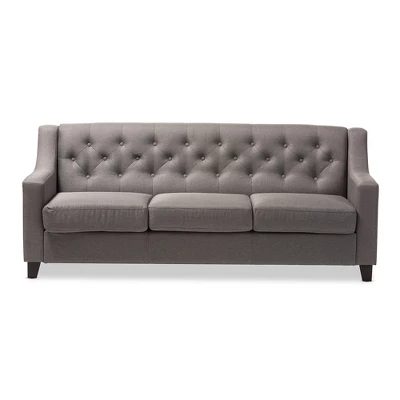 The Arcadia fabric upholstered living room 3-seater sofa blends classic buttons detailing with modern lines and contrast wooden legs. This quality 3-seater sofa has been expertly crafted from solid hardwood and upholstered with a smooth and inviting polyester fabric that is easy to care for and is soft to the touch. The Arcadia provides comfort with its foam filled cushioning and seat which sits on a supportive and sturdy sprung base. With sleek lines and sensuous curves, the arcadia will add flair to your living space. Made in Malaysia, the Arcadia requires assembly.