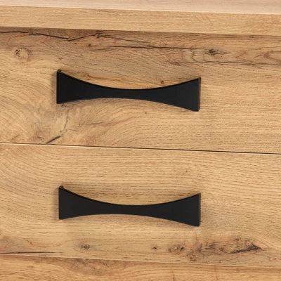 Organize your bedroom interior with the Colburn nightstand. Made in Malaysia, this sturdy piece is constructed from high-density engineered wood boards for long-lasting strength along with quality runners for smooth functionality. The natural oak brown finish injects visual warmth into your space while complementing a variety of modern room layouts. Requiring assembly, the Colburn features two large drawers to efficiently organize all your bedside essentials. Metal drawer handles add a sleek, contemporary touch, characterizing the Colburn nightstand as a sophisticated solution to modern bedroom storage. Dimensions: 15.29″ High x 18.9″ Wide x 15.75″ Deep; Drawer Dimensions: 3.54″ High x 14.37″ Wide x 12.56″ Deep;