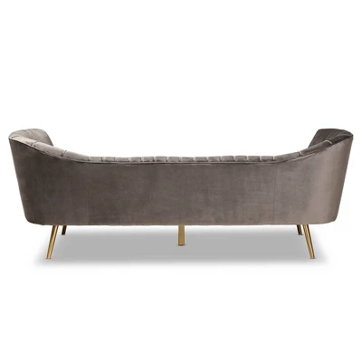 Aveline Velvet Upholstered Finished Sofa Gray/Gold – Baxton Studio