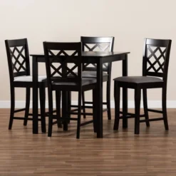 5pc Arden Upholstered Wood Pub Counter Height Dining Set Gray/Espresso – Baxton Studio