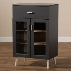 Jonas Oak Finished Kitchen Cabinet Gray/Brown – Baxton Studio