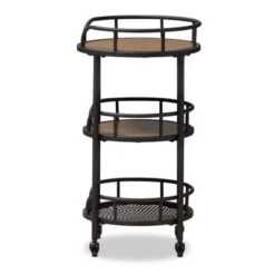 Crayton Wood And Metal Mobile Kitchen Storage Cart Oak Brown/Silver – Baxton Studio
