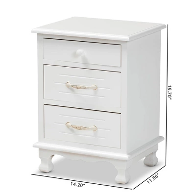 The stunning Layton end table brings modern convenience to your home while exuding traditional grace. Made in China, this end table is crafted from sturdy wood. Three drawers provide ample storage space for a variety of household essentials while molded accents showcase the expert craftsmanship. Comes fully assembled, the Layton features a unique visual texture with scalloped edges and shallow perforations. A charming yet efficient addition, the Layton end table elevates the modern home. Overall Dimensions: 19.70″ High x 14.20″ Wide x 11.80″ Deep; Drawer Dimensions: 11.40″ Wide x 10.20″Deep x 5.30″High; Legs: 2.40″ High;