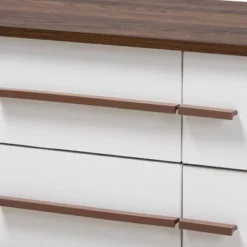 Meike Two-Tone Wood TV Stand For TVs Up To 70″ Walnut/White – Baxton Studio