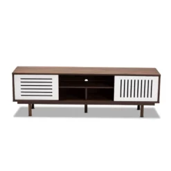 Quinn 2 Door Wood TV Stand For TVs Up To 75″ Walnut/White – Baxton Studio