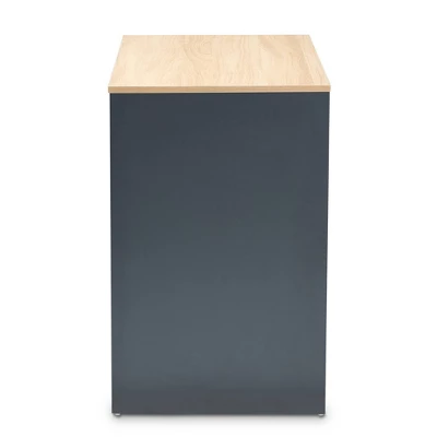 Add a bold look to your office with the Reed desk. This wood desk features gray, oak, and white finishes for a fun, playful feel. Two spacious drawers provide ample space to store pens, paper, and more. Cut-out drawer handles add a modern look. The Thera also features a vertical compartment to hold books or a CPU. This stylish desk is well suited for a commercial office or home office. The Reed desk is made in Malaysia and requires assembly.