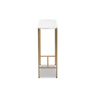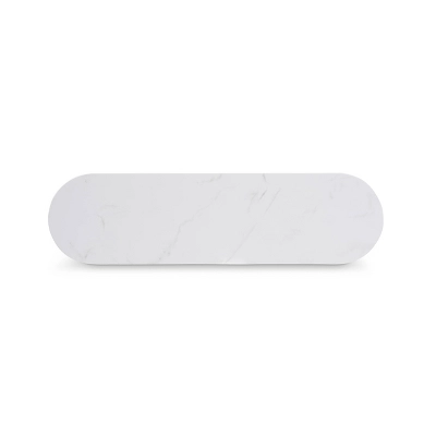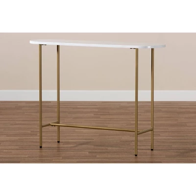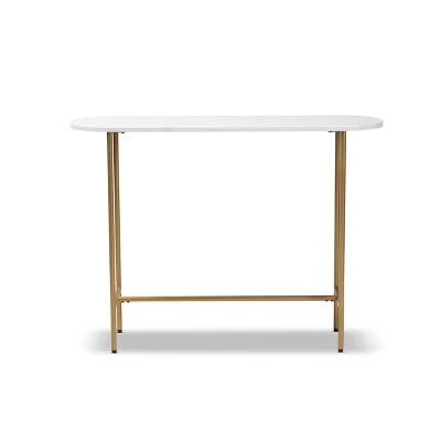Cultivate an air of luxury in your space with the Samuel console table. Made in China, the Samuel is comprised of a minimalist gold finished metal frame and an oval-shaped faux marble tabletop. The slim silhouette and wide surface area make this piece ideal for decluttering entryways or living rooms. Requiring assembly, the Samuel is fitted with black non-marking feet for easy transport and rearrangement. Display your favorite decorative pieces on the glamorous Samuel console table.