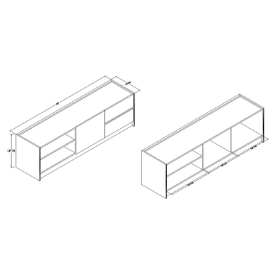 - Dimensions: 18.9″ High x 63″ Wide x 15.75″ Deep; Top Shelf: 6.5″ High x 23.6″ Wide x 14″ Deep; Bottom Shelf: 7″ High x 23.6″ Wide x 14″ Deep; Left Compartment Behind Door: 14.1″ High x 18.1″ Wide x 13.4″ Deep; Right Compartment Behind Door: 14.1″ High x 18.9″ Wide x 13.4″ Deep;